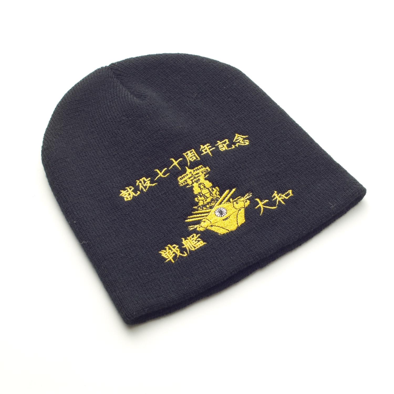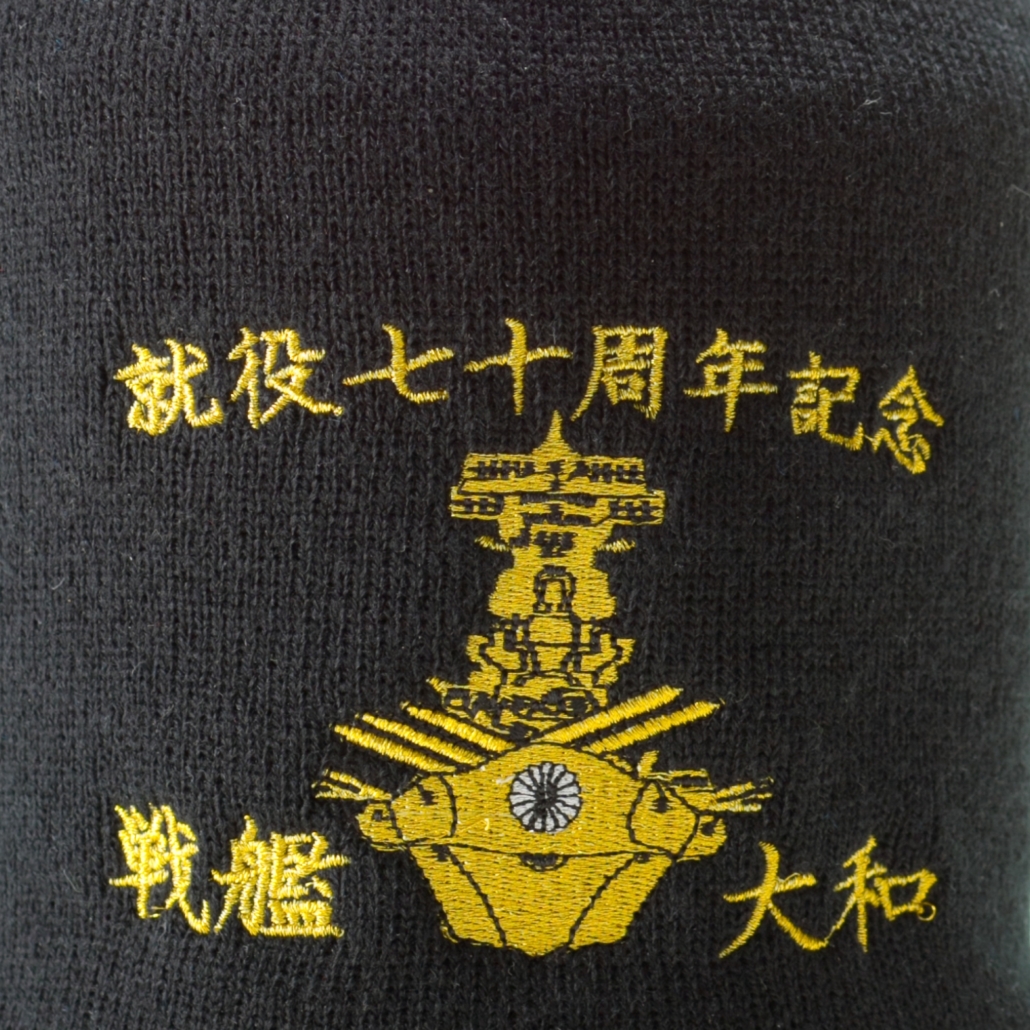 戦艦大和ファンの皆様、お待たせしました。就役70周年記念! 自衛隊PX品のニットキャップ、待望の大和バージョンが登場!史上最強の勇姿を豪華刺繍した、ファンには絶対に見逃せない逸品です。シンボルである46cm砲。菊の御紋の位置にゴールド刺繍を施すなど、大和の名に恥じない仕上がりです。