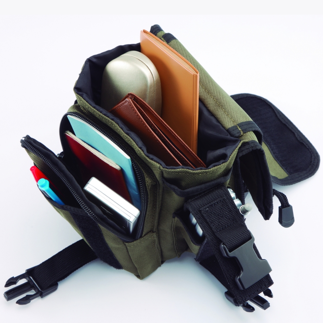 ファッション性も高く、超レアなお宝アイテムで、本格派だから機能面は文句なし!一般のバッグはせいぜい600デニールだが、このポーチは1,000デニールの丈夫な生地をキャンパス状に編みこんでいるから、タフで破れにくい!アウトドアーだけではなく、ストリートでも「別格」の実力を発揮!外ポケット9+内ポケット1の圧倒的な装備力で、アウトドアや天候を意識した装備が必須となる野外フェスシーンを強力にサポートしてくれるぞ。