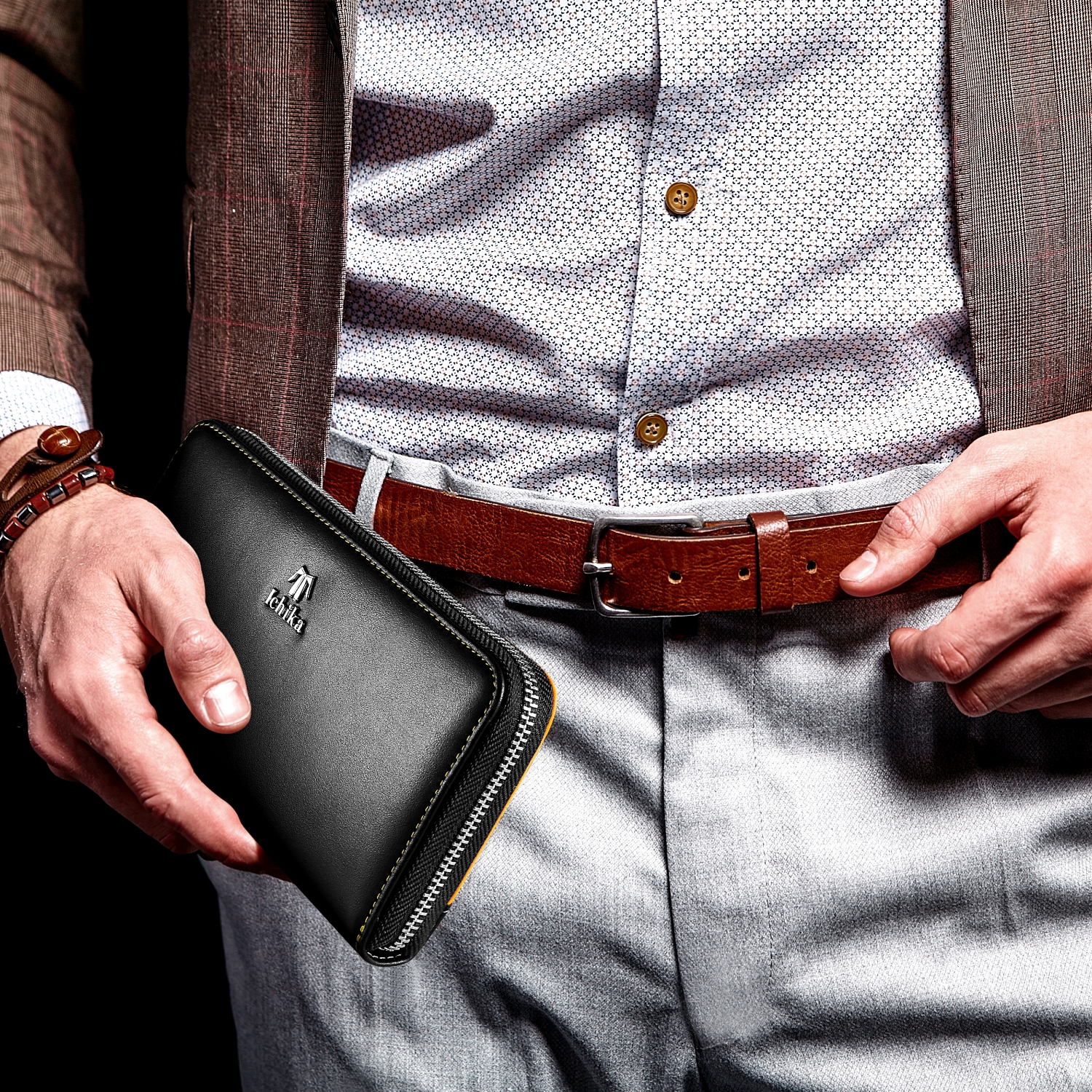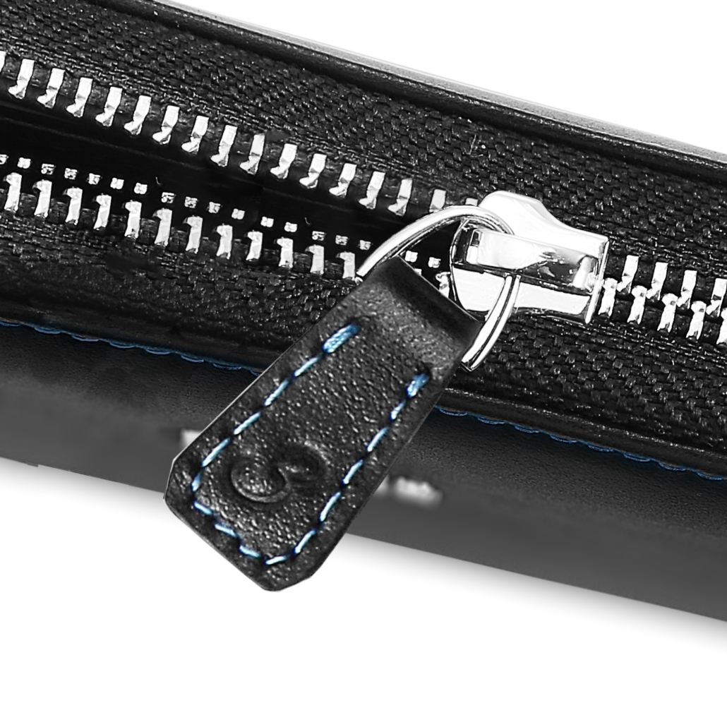 まず目につくのは、上質な艶感あるブラックのイタリアンレザーにあしらわれたメタルのモチーフ。さらに裏面とステッチ、カード入れにはキャラクターをイメージしたデザインを採用して、さりげないオシャレが楽しめます。また、ファスナーの引き手にも五つ子の数字が刻印される細部までこだわった作り込みに。イタリアンレザーの財布は共に歩む事で成長していく五つ子たちのように味わい深く馴染んでいきます。